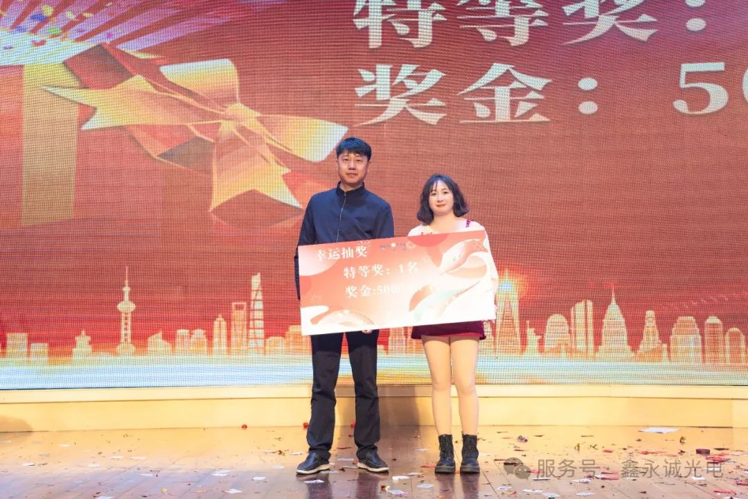 精彩的演出讓大家意猶未盡,“幸運(yùn)抽獎(jiǎng)”環(huán)節(jié)將現(xiàn)場(chǎng)的氣氛推向了沸點(diǎn)。隨著主持人一次次念出中獎(jiǎng)同事名字,幸運(yùn)兒們歡呼雀躍,臉上洋溢著幸運(yùn)和幸福的笑容;